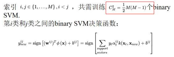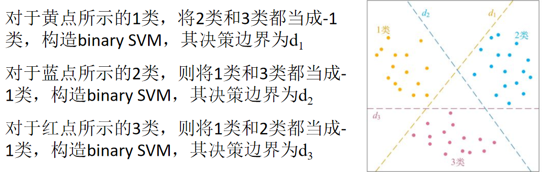 对于每一个类,将其作为+1类,而其余M-1个类的所有样本作为-1类,构造一个binary SVM。