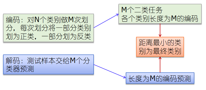 多对多(Many vs Many, MvM)若干类作为正类,若干类作为反类