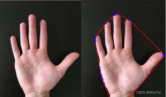 理解物体形状或轮廓的一种比较有用的方法便是计算一个物体的凸包,然后计算其凸缺陷(convexity defects)。