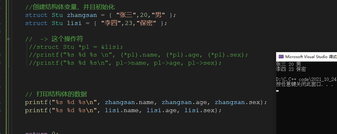 printf("%s %d %sn", lisi.name, lisi.age, lisi.sex);