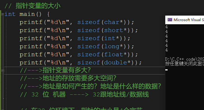 //--->指针变量有多大?
