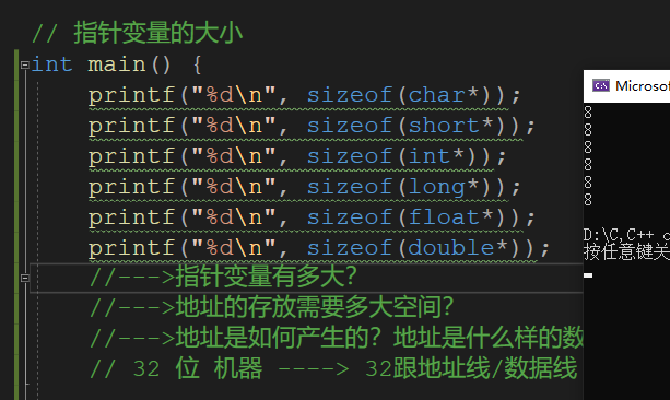 指针变量的大小: