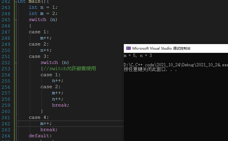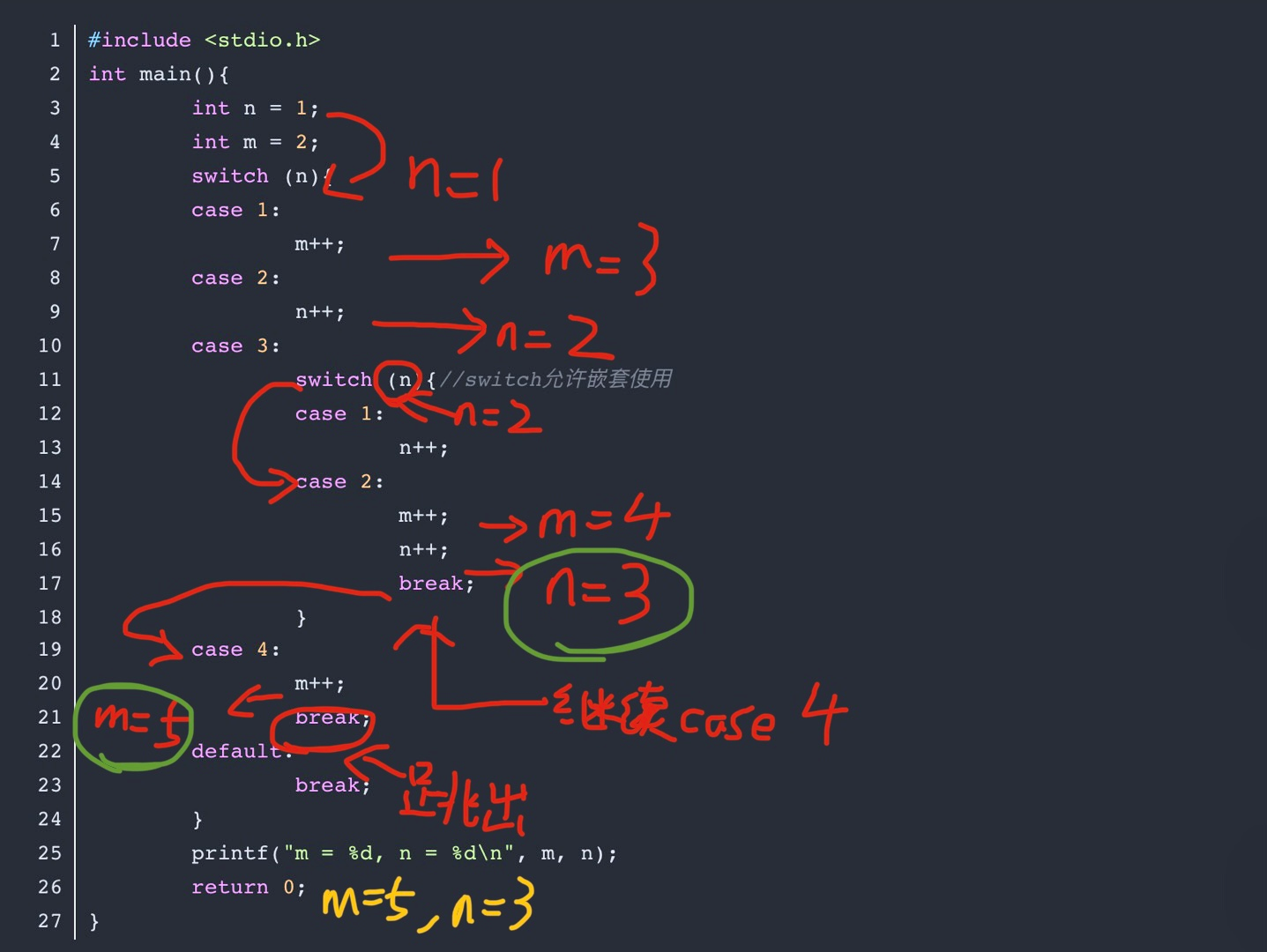 switch (n){//switch允许嵌套使用