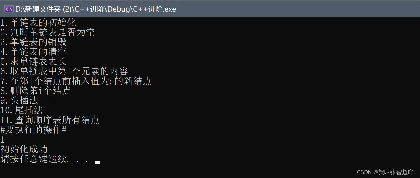 cout << "1.单链表的初始化" << endl;