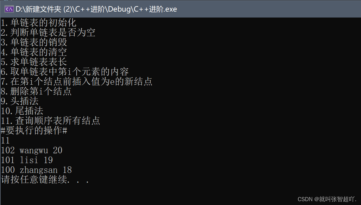 cout << "3.单链表的销毁" << endl;