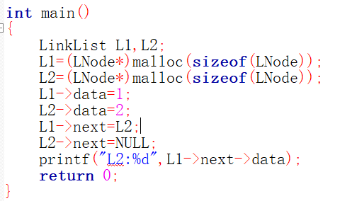 上图为列子,若不malloc手动开辟内存地址,直接采用L1->data=1赋值是无效的。