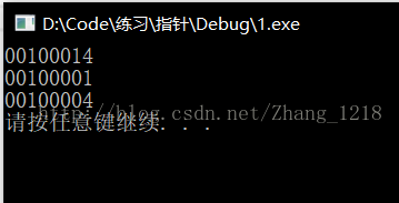 第一个,p+0x1,就等于p+1,指针加1,加的是指针所指的结构体的大小,而这个结构体的大小为20,所以,结果为:0x00100014;