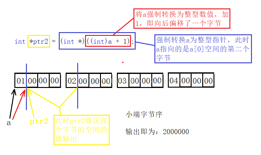 int *ptr2 = (int *)((int)a + 1);