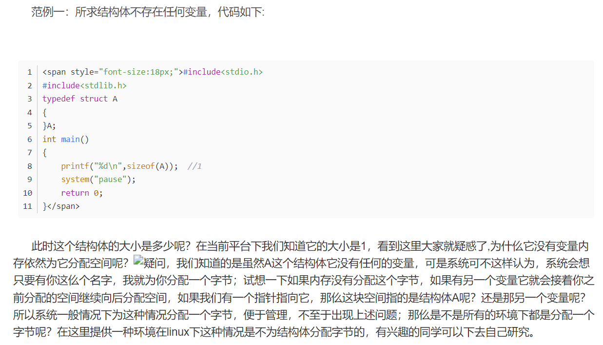 如果定义一个没有成员变量的结构体,系统又会分给这个结构体一个字节,(视编译器而定)