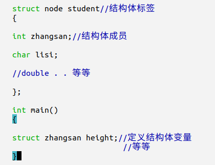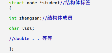 结构体由:(1)结构体标签 (2)结构体成员 (3)结构体变量组成。