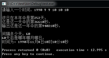 (1)输入一个时间(注意各部分数据的取值范围)将输入的时间保存在一个结构体变量中;