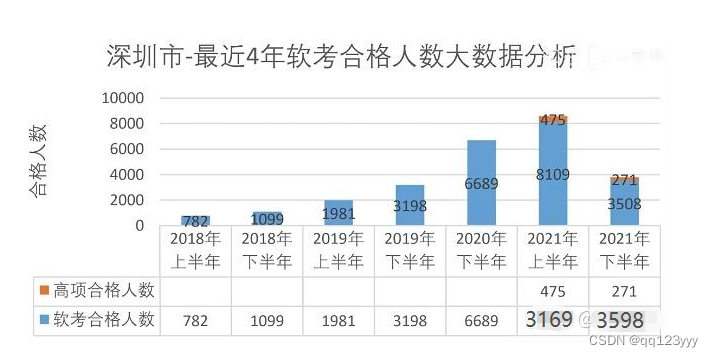 结合以往的数据统计的话,这边推荐高级科目信息系统项目管理师会比较好考点,毕竟高项偏管理类,就是死记硬背的比较多,要花时间去备考,再结合深圳近4年的高项通过人数就知道啦~
