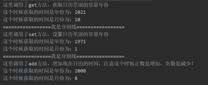 System.out.println("这里调用了get方法,获取日历里面的常量年份");