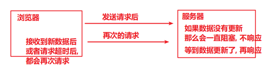 浏览器发出XMLHttpRequest 请求,服务器端接收到请求后,会阻塞请求直到有数据或者超时才返回