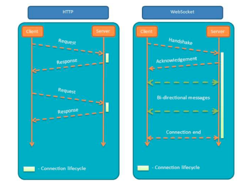 HTTP 和 WebSocket 的连接通信比较图: