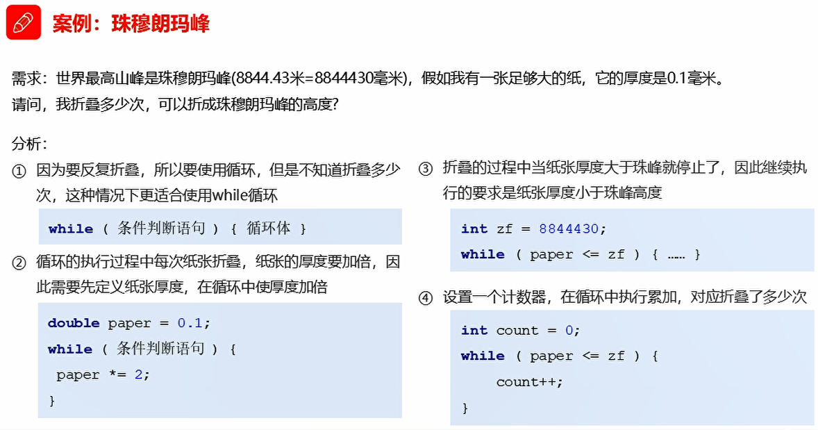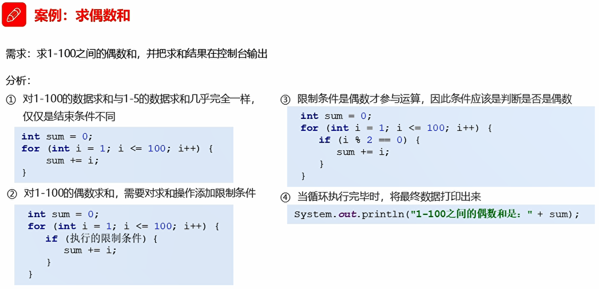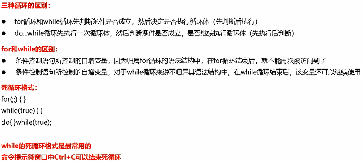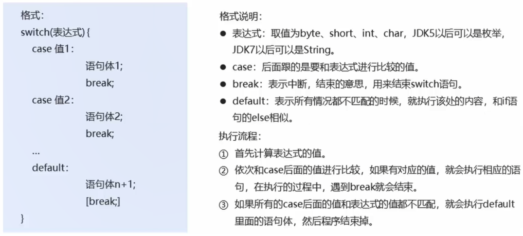 以上就是勤奋唇彩最近收集整理的关于Java03-day03【switch、循环(for、while、do...while)、三种循环的区别、跳转控制语句、Random、循环经典例题】037_switch结构038_春夏秋冬039_for结构040_输出数据041_求和042_求偶数和043_水仙花044_统计045_while结构046_珠穆朗玛峰047_do...while结构048_三种循环的区别049_跳转控制语句050_循环嵌套051_Random052_猜数字的全部内容,更多相关Java03-day03【switch、循环(for、while、do...while)、三种循环内容请搜索靠谱客的其他文章。