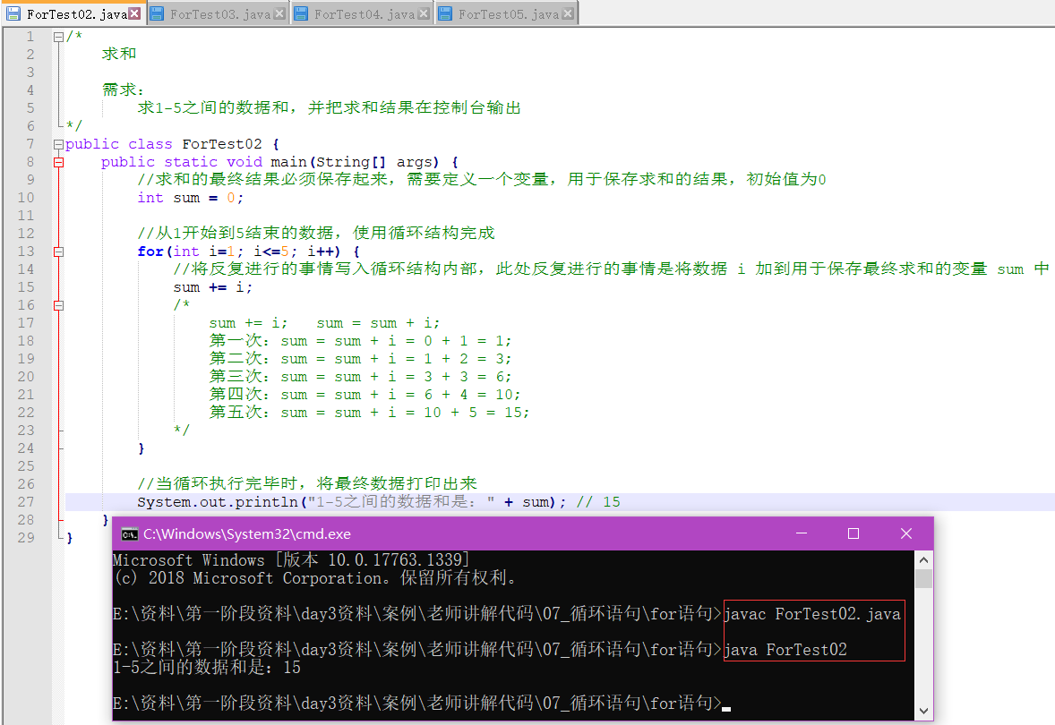 - 求和变量的定义位置,必须在循环外部,如果在循环内部则计算出的数据将是错误的。