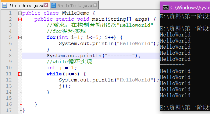 循环语句可以在满足循环条件的情况下,反复执行某一段代码,这段被重复执行的代码被称为循环体语句,当反复执行这个循环体时,需要在合适的时候把循环判断条件修改为false,从而结束循环,否则循环将一直执行下去,形成死循环。