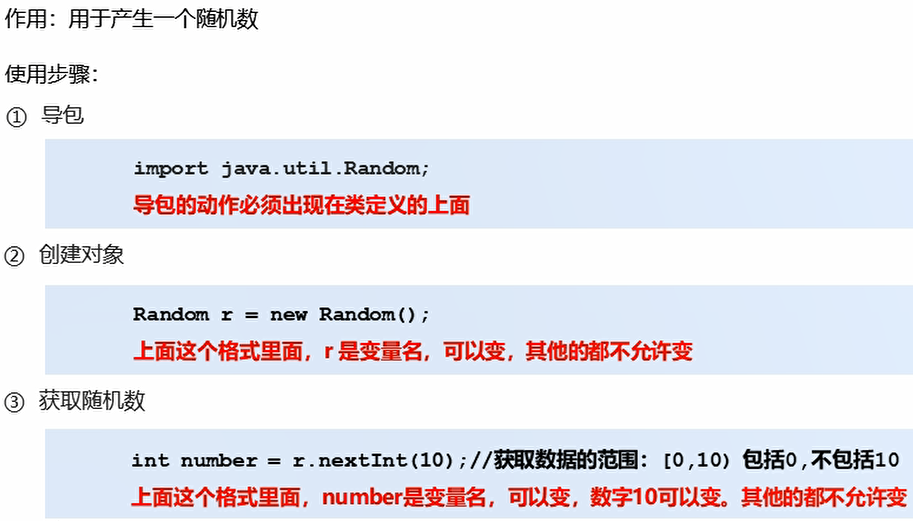 Random类似Scanner,也是Java提供好的API,内部提供了产生随机数的功能。