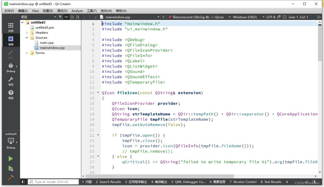 在功能方面,Qt Creator 包括项目生成向导、高级的 C++ 代码编辑器、浏览文件及类的工具、集成了 Qt Designer、图形化的 GDB 调试前端,集成 qmake 构建工具等。开发基于QT界面库的C/C++应用程序时,我们一般都用QT Creator来开发。因为QT界面库是跨平台的,所以如果要开发一套既支持Windows系统有支持Linux系统的桌面应用软件,一般会选择使用QT界面库,会使用QT Creator开发环境去开发。