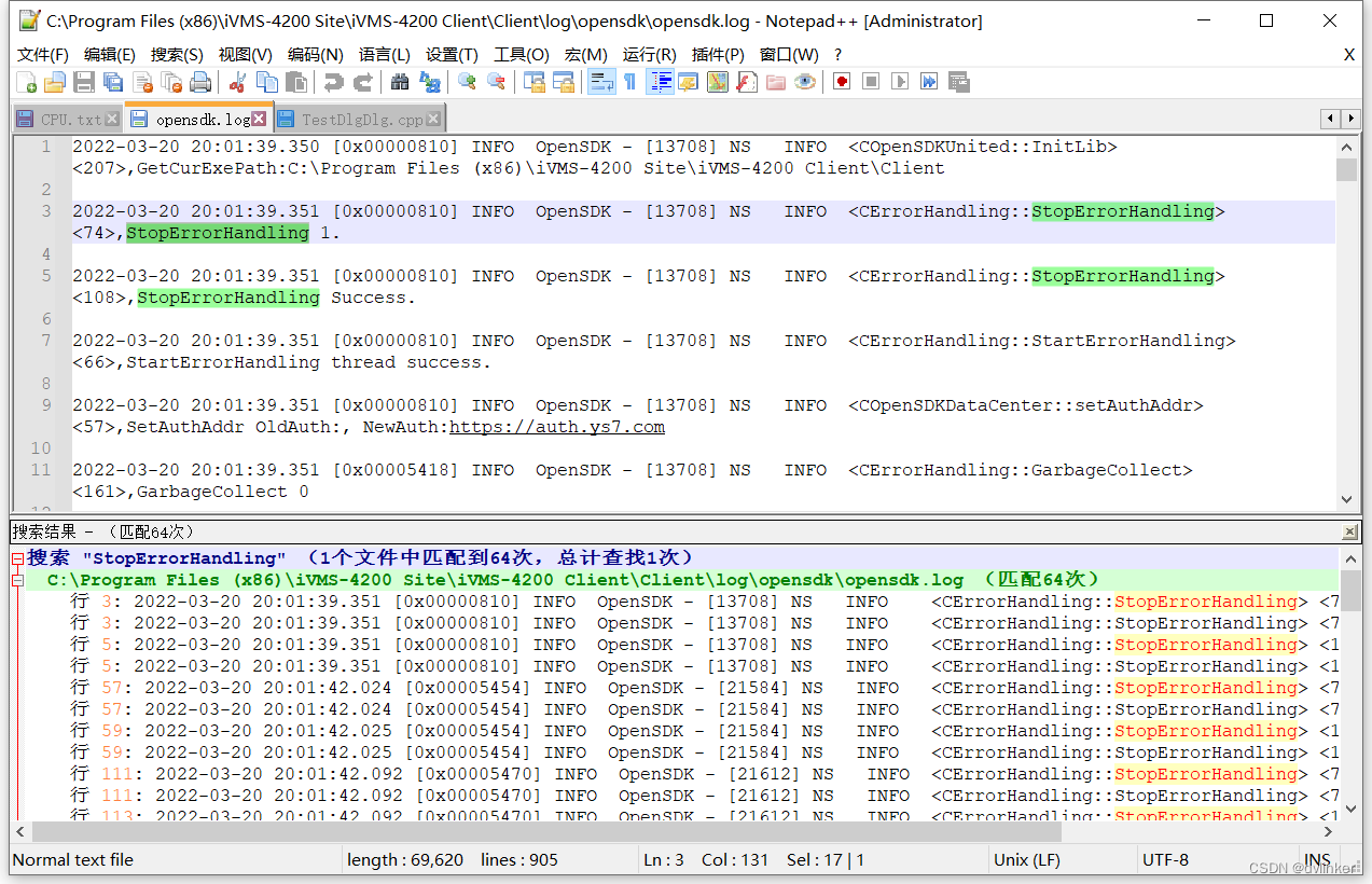 可以使用Notepad++查看源代码,它支持语法高亮显示。Notepad++支持多标签页,可以同时打开多个文件。我们经常使用Notepad++查看日志文件,支持在文件中搜索,可以对匹配到的关键字的次数进行计数,并将搜到的记录显示出来,可以切换查看,这对查看软件运行日志非常方便。