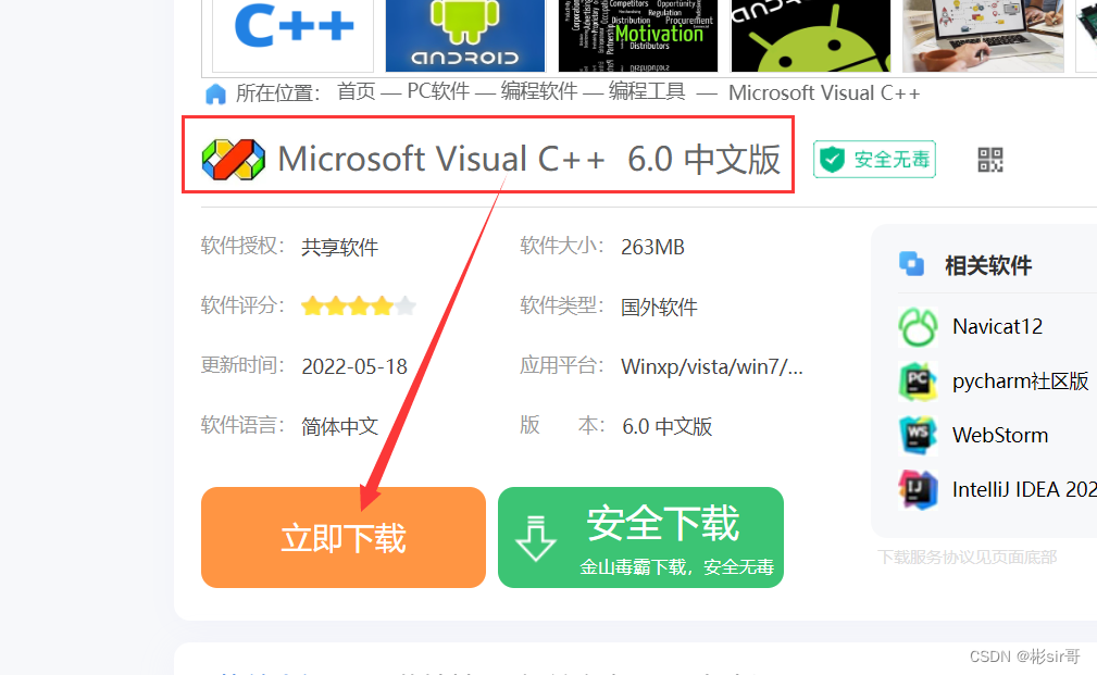 第一步骤:C语言软件下载:Visual C++ 6.0
