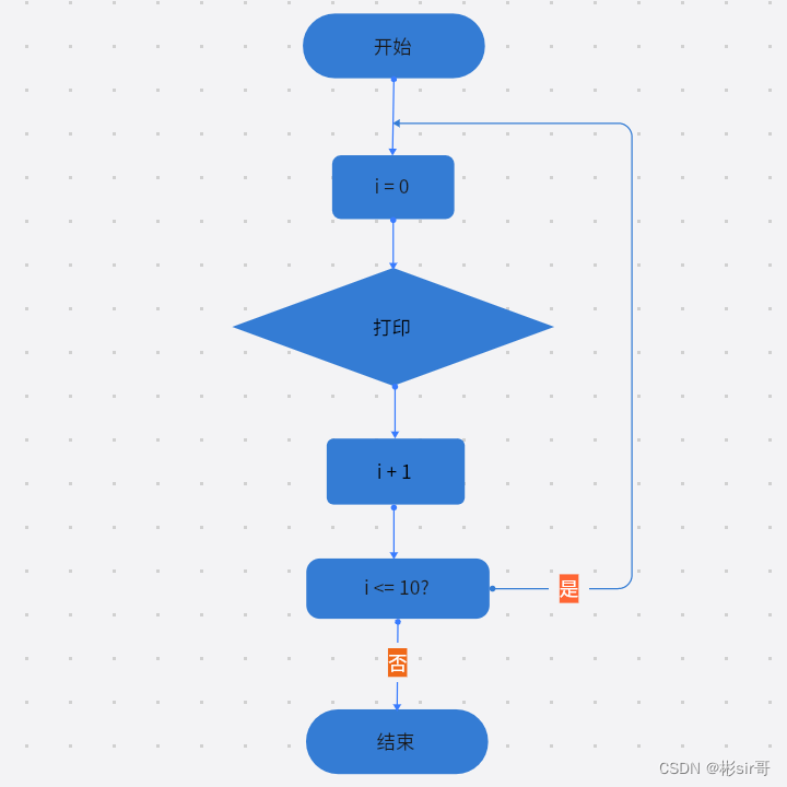 for()表示用for循环,i=0表示初始化,i<=10表示i=0至10为止,i++表示i+1,如果i=0被循环一次后给printf()打印,因为没至10继续被循环后给printf()来打印,重复一样,最后i超10就马上结束不给printf()打印