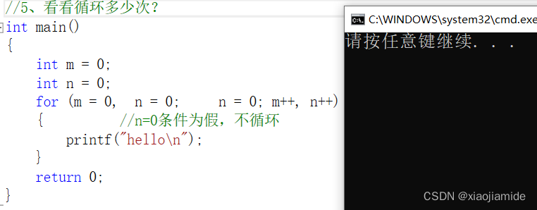 例子5的结果为不循环,因为判断n= 0条件为假,不执行,代码如下所示: