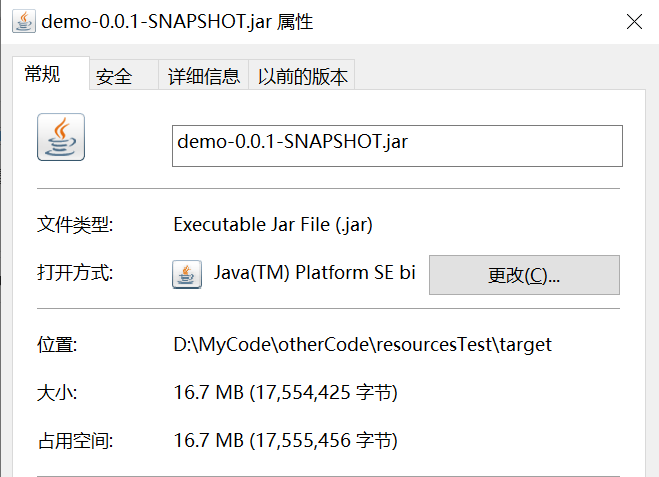 查看包的大小,会发现,打出来的包特别小,什么原因呢?就是因为没有添加maven 插件,导致没把依赖的包打进去,要知道,springbot就算是刚创建的项目,他也会依赖很多jar包,这样就导致打出来的包根本没办法用。