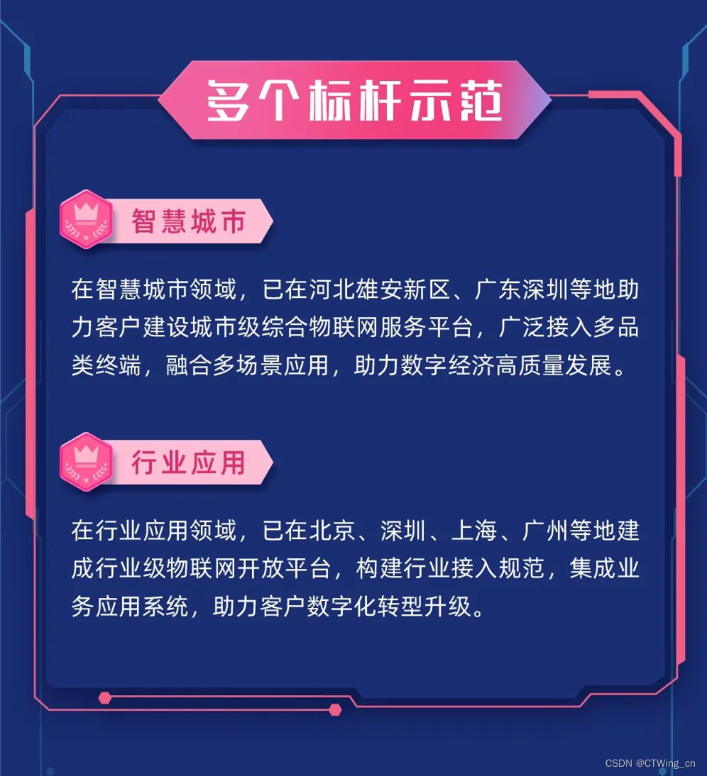 在行业应用领域,天翼物联网平台AIoT已在北京、深圳、上海、广州等地建成行业级物联网开放平台,构建行业接入规范,集成业务应用系统,助力客户数字化转型升级。