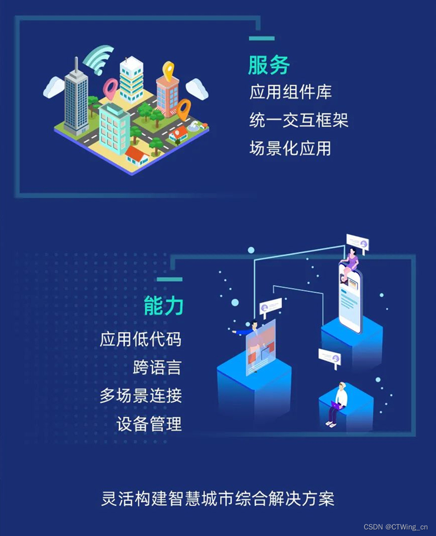 天翼物联网平台AIoT提供应用组件库、统一交互框架、场景化应用等服务,通过应用低代码、跨语言、多场景连接、设备管理等能力,灵活构建智慧城市综合解决方案。