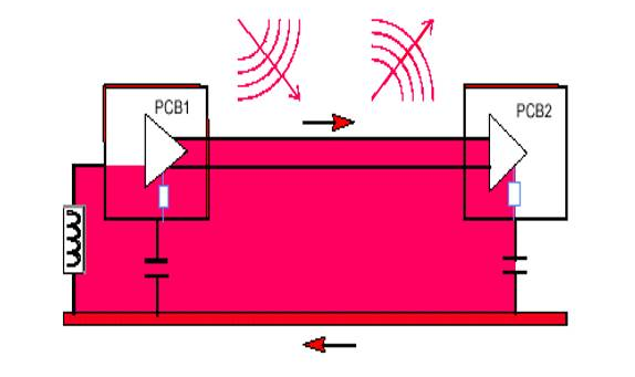 - 差模干扰(Differential-mode):两导线上的干扰电流,振幅相等,方向相反 称为差模干扰。