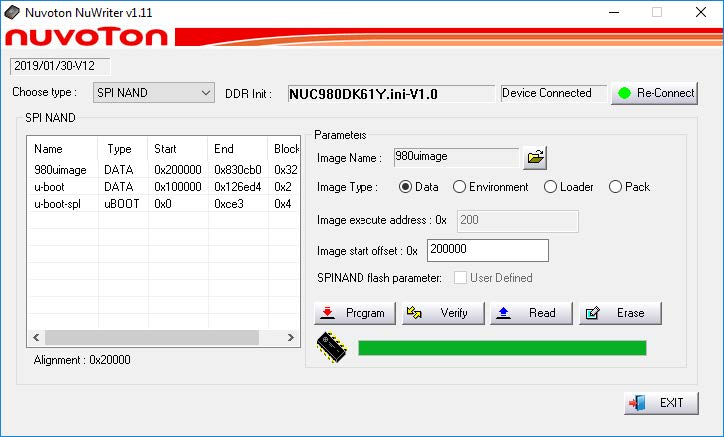 9、运行 NuWriter.exe 软件,分4步烧录: