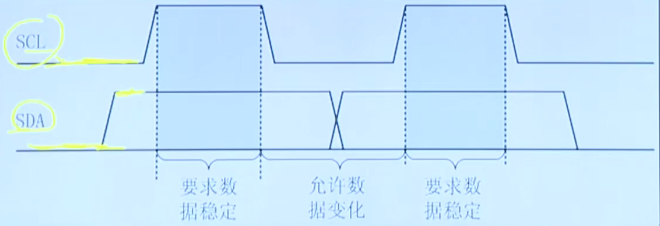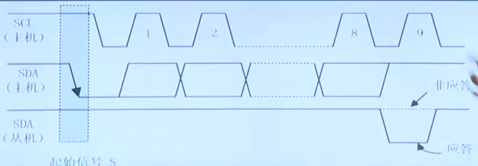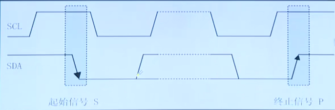SCL为高电平时,SDA由高变低表示起始信号