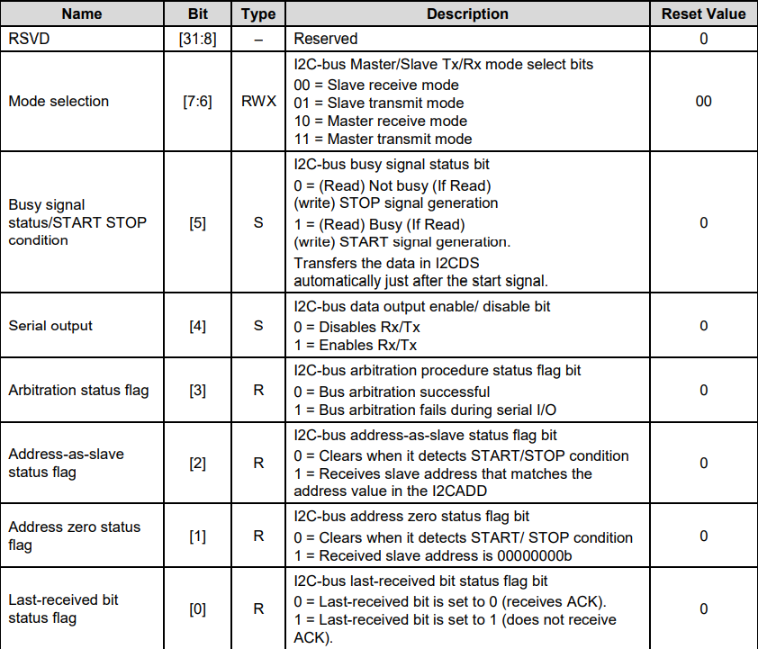control/status register - I2CSTAT 控制IIC功能以及显示IIC的一些状态的寄存器