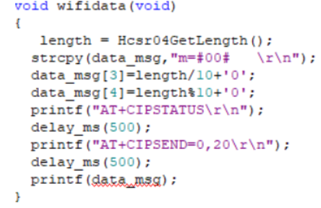然后这个数据上报,我用的是超声波模块的数据上报距离,这里需要的是两条ap指令,这是必须要有的,需要这两条指令随时随地往esp8266发送,这样才能实现数据上传。