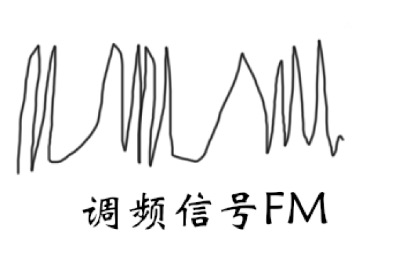 跟调幅相对应的就是频率调制,高频信号随着低频信号来改变高频信号的频率,这也是把低频信号耦合进高频信号的一种手段,经过调制后的波形大概是这个样子的。