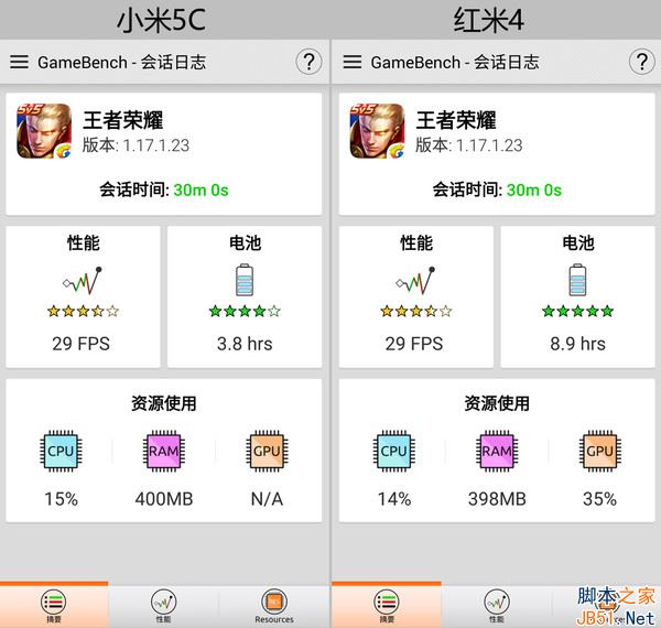 流畅度方面,软件监测的结果显示,小米5C运行30分钟《王者荣耀》的平均帧数为29FPS,整个游戏过程并没有明显的卡顿现象。此外,搭载高通骁龙625处理器的红米4同样有不错的表现,平均帧数也是29FPS,发热也很低。但是,通过对比发现,红米4的功耗明显优于小米5C,原因是高通骁龙625功耗比澎湃S1好。