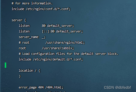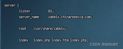 - 默认的配置文件在/etc/nginx/conf.d/zabbix.conf