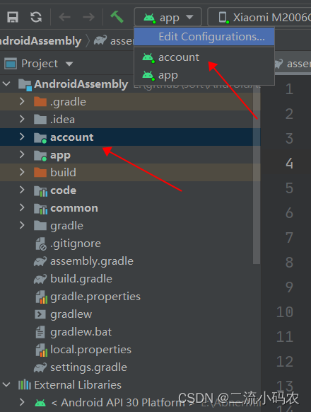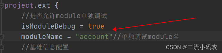 在第2步中,对所有的组件进行了依赖和版本号管理,同样也加入了动态改变清单文件资源指向,那么一个单独的组件如何运行呢?我们以Demo中的account模块举例。