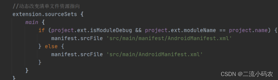 上边已经阐述,组件化的最直接表现就是在业务模块,也就是根据项目的实际功能,拆分出符合的业务模块,比如社区,比如用户信息,比如商城等等,拆分之后,一定要能保持单独运行,本着合则依赖,拆则运行的态度,那么我们需要解决两个问题,一个是application和library之间的动态切换,另一个就是需要动态改变清单文件资源指向,毕竟单独运行的Module,必须有一个主入口的存在。