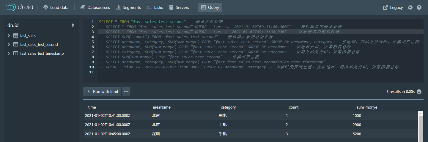 -- SELECT * FROM "fast_sales_test_second" WHERE __time <= '2021-01-02T10:41:00.000Z' -- 按时间范围查询数据
