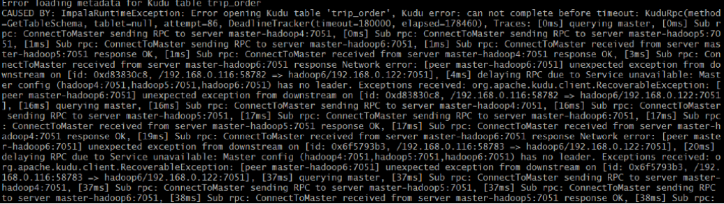通过 Kudu API 或其他集成(如 Apache Spark )创建的表不会在 Impala 中自动显示。