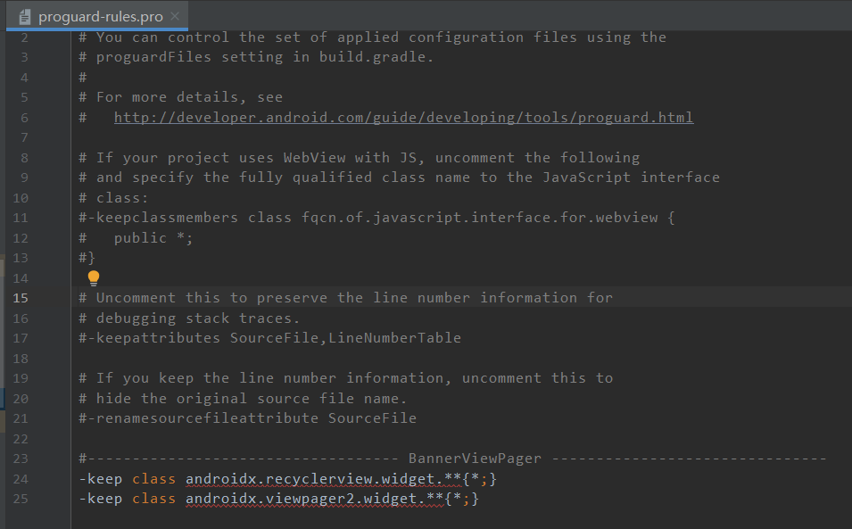 consumerProguardFiles "proguard-rules.pro"