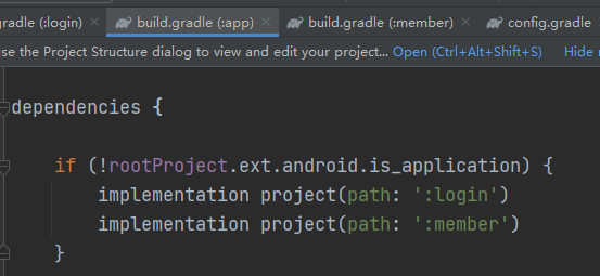 在除app模块之外的其他模块中判断是加载application还是library来实现随意切换,别忘了只有此时模块为application是才存在applicationId,因此也将进行判断。