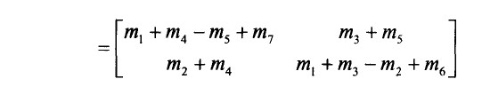 int [][] C00 = addArrays(m7,subArrays(addArrays(m1,m4),m5)); // m1+m4-m5+m7