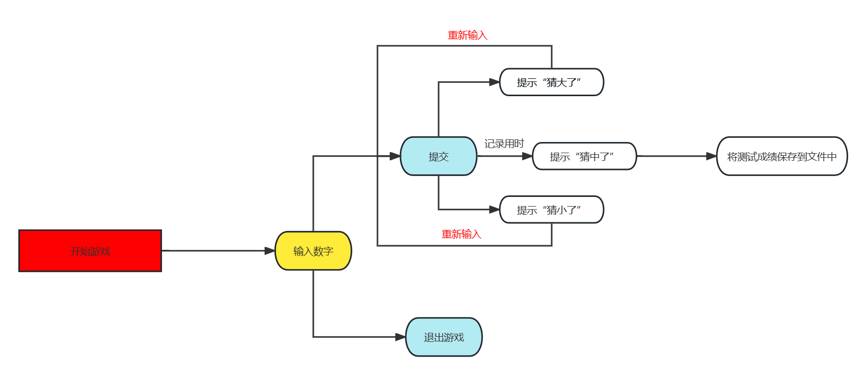 计算机产生随机数,猜中即胜,猜不中,提示是大了还是小了,继续猜,直至猜到,给出所用时间和评语。保留用户测试成绩,做出成绩排行榜。排行榜存放到文件中。