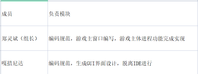 1.团队名称、团队成员任务分配