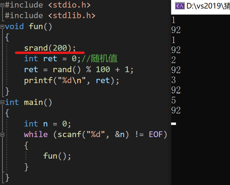 给srand函数传200,运行如下:
