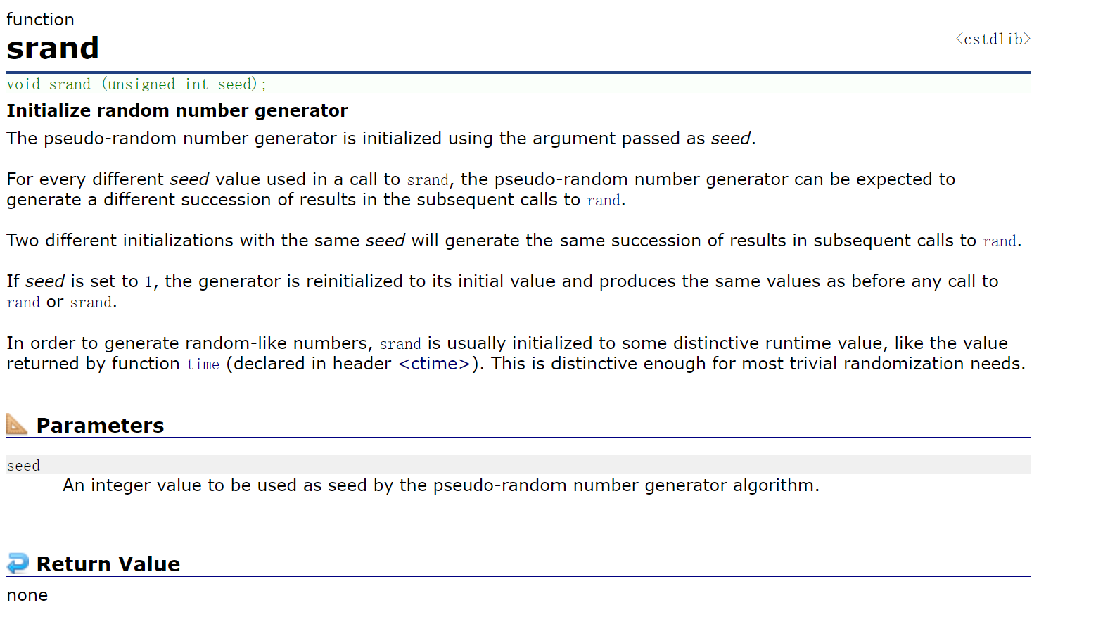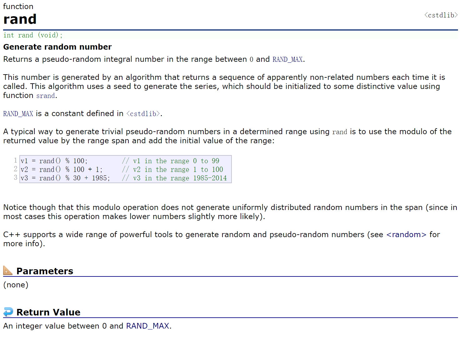 在cplusplus官网上查到的rand这个库函数的介绍